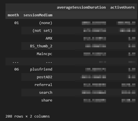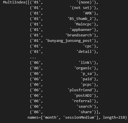 - row_index_names: 각 차원의 이름을 담고 있는 리스트입니다. 예를 들어, 'month', 'sessionMedium' 등이 될 수 있습니다.