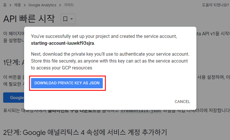 구글 분석과 파이썬 코드 모두에서 승인할 API에 대한 키를 제공한다.