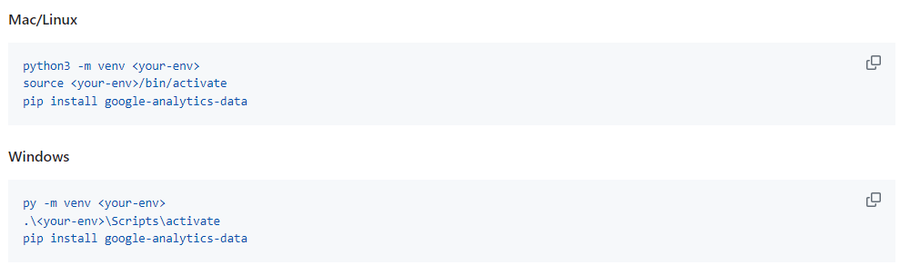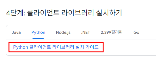 Google 분석 패키지를 설치해야 라이브러를 실행할 수 있다. 4단계에서 깃허브에 접속하여 패키지 다운로드 코드를 확인하여 다운로드 받아준다.