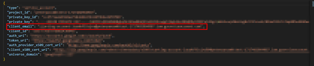 JOSN 파일을 열어, client_email 부분을 복사한다.