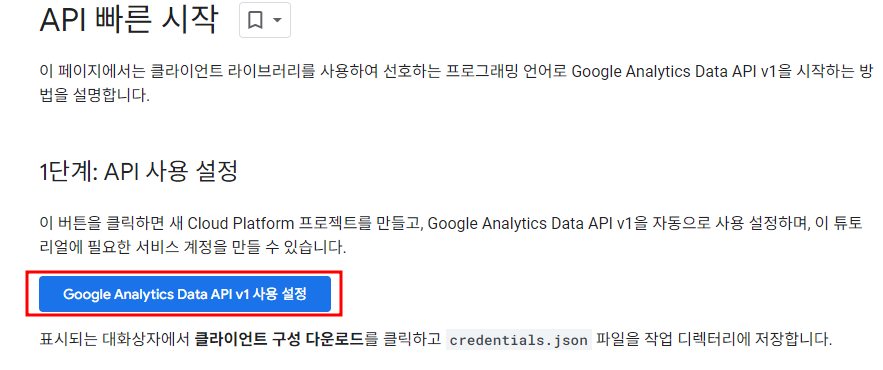 # Google Analytics Data API 클라이언트 초기화. 이 클라이언트를 통해 API에 요청을 보내고 데이터를 받을 수 있습니다.
